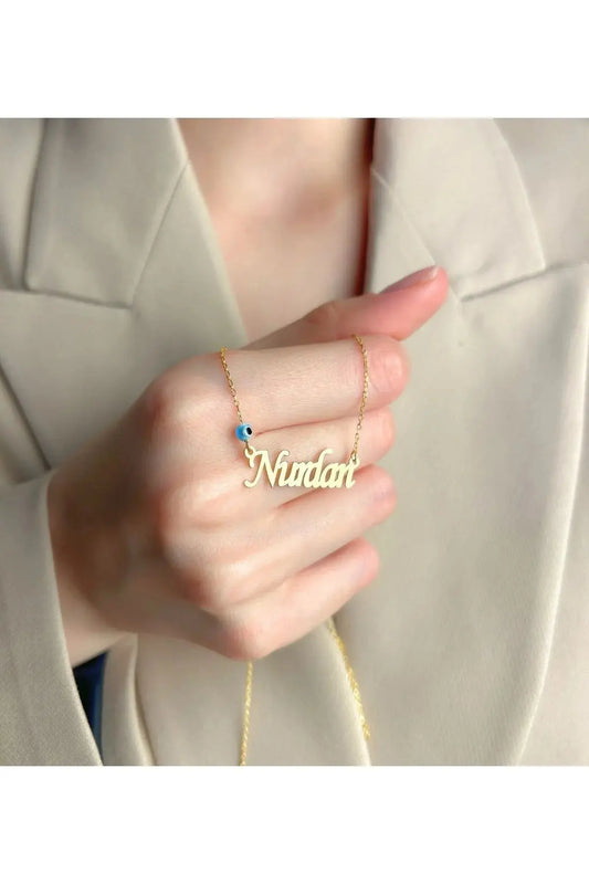 Nazar Boncuklu Kişiye Özel İsimli Kolye