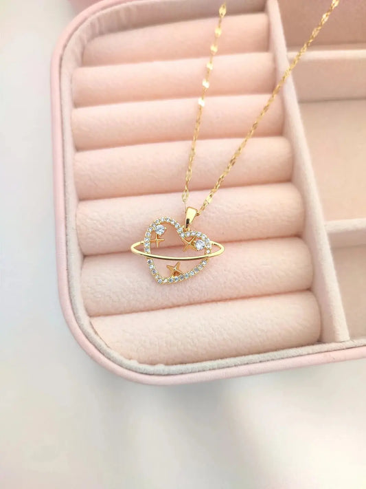 Zirkon Taşlı Yıldızlı Satürn Kolye