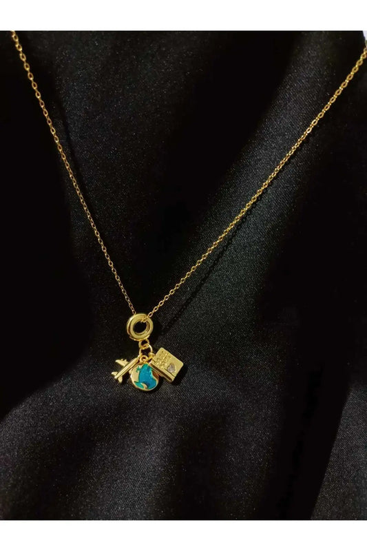 Uçak Pasaport Dünya Seyahat Kolye